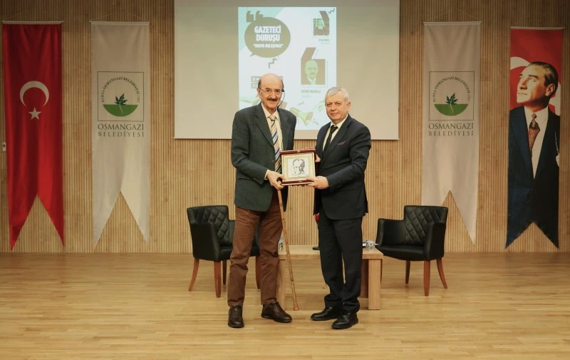 Programın sonunda Osmangazi Belediye Başkan Yardımcısı Mutlu Esendemir, günün anısına gazeteci Hüsnü Mahalli’ye hediye takdim etti.