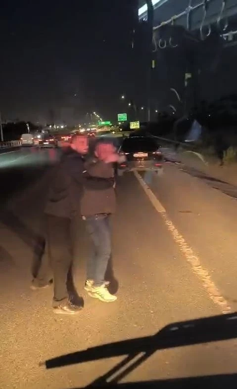 İstanbul’da yol tartışması nedeniyle otobüsün önünü keserek şoföre tehditler savuran 2 maganda cep telefonu kamerasıyla görüntülendi.