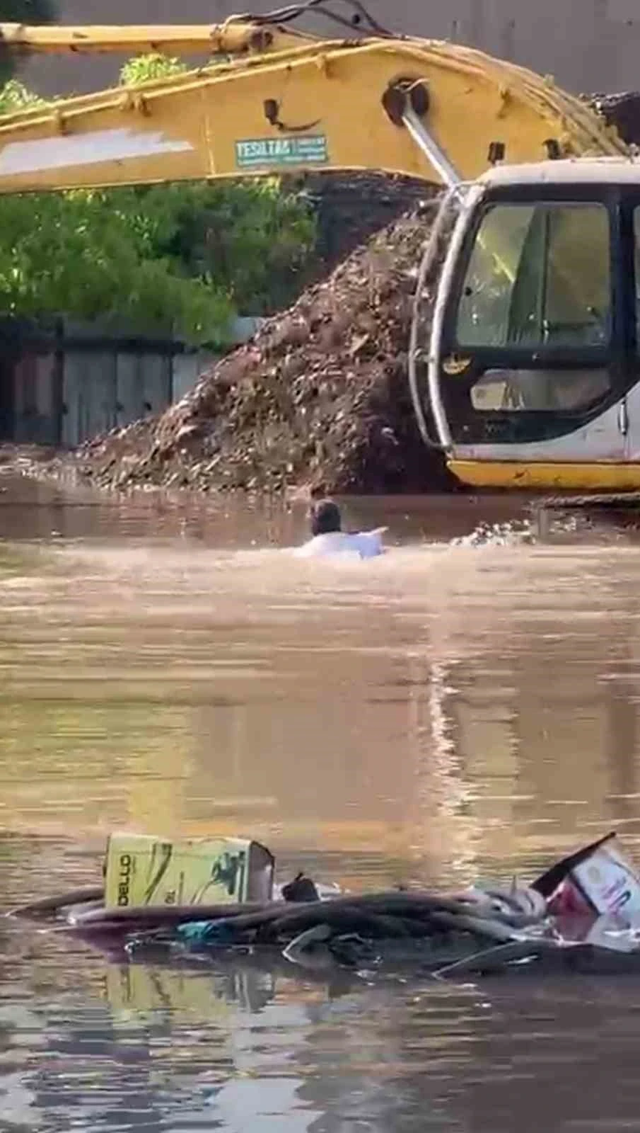 Hatay’da gece saatlerinde etkili olan yağışlı hava hayatı olumsuz etkilemiş ve göllenmeler yaşanmıştı. Payas ilçesinde gece etkili olan yağışla birlikte Yenişehir Mahallesi’nde bulunan şantiye alanındaki paletli kepçe su altında kaldı. Yağışlı havanın etkisini yitirmesiyle operatör, yüzerek ulaştığı iş makinasını yüzerek kurtardı. İş makinası operatörü, kepçeyi kurtararak bölgedeki suyun tahliyesi için tahliyelere başladı. Operatörün yüzerek iş makinasına ulaştığı anlar kameraya yansıdı.