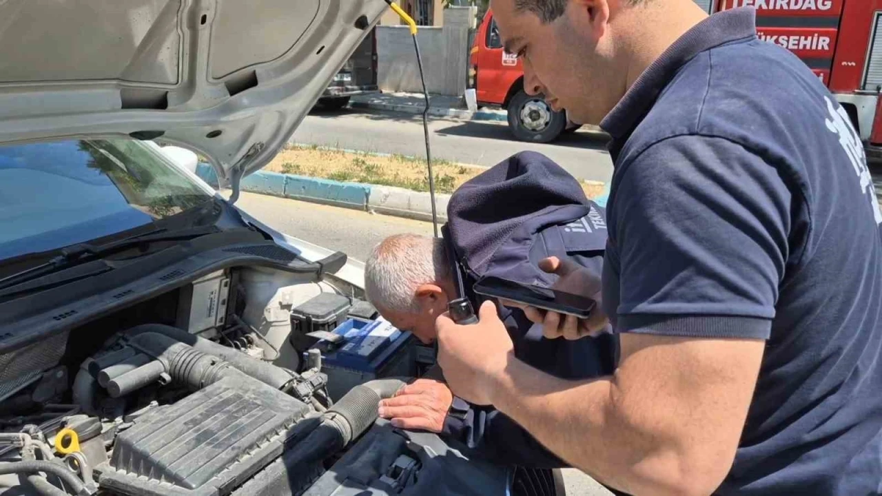Süleymanpaşa ilçesi Çınarlı Mahallesi Tepe Değirmenleri Caddesi’nde Cihat Ersöz, seyir halindeyken aracından kedi sesi geldiğini fark etti.
