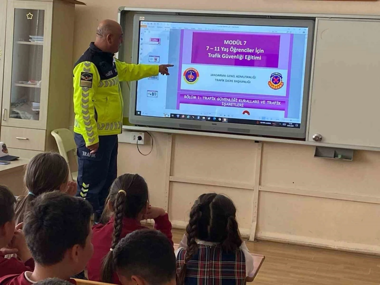 Kırklareli İl Jandarma Komutanlığı ekipleri sorumlu oldukları bölgelerde öğrencilere trafik kuralları hakkında bilgilendirdi.