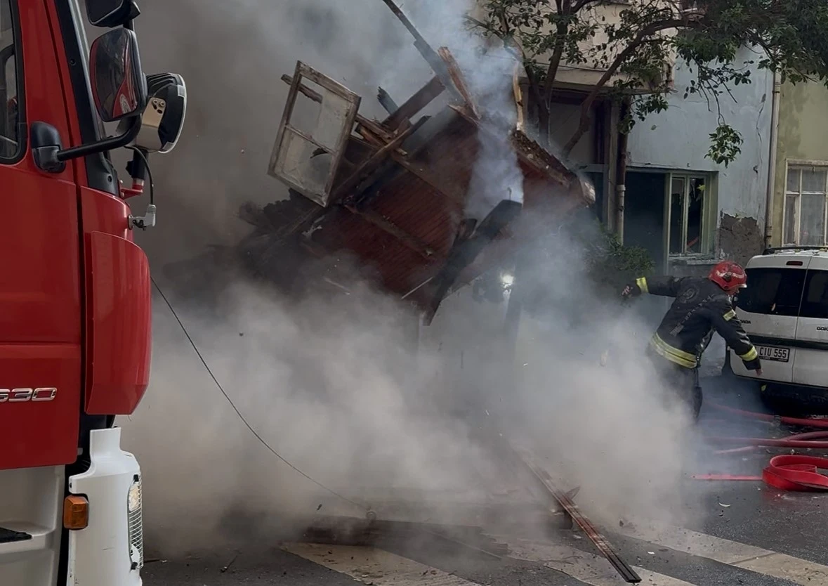 Kocaeli’nin Darıca ilçesinde bitişik ahşap evlerde çıkan yangında sırasında yanan evin tahta duvarı görevli 2 itfaiye erinin üzerine düştü.