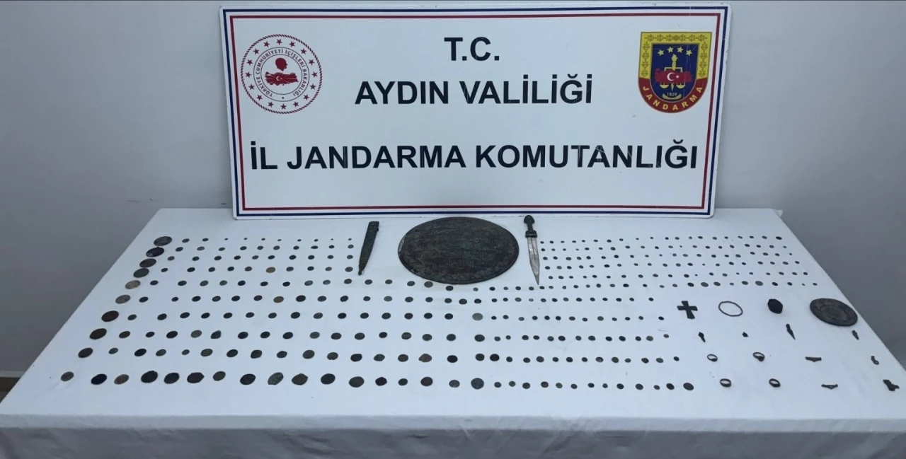 Aydın’ın Kuşadası ilçesinde jandarma ekiplerince yapılan operasyonda, bir evde 5 milyon TL değerinde Roma, Bizans ve Osmanlı dönemlerine ait tarihi eserler ele geçirildi. Aydın İl Jandarma Komutanlığı KOM Şube Müdürlüğü ve Kuşadası İlçe Jandarma Komutanlığınca tarihi eser kaçakçılığına yönelik koordineli çalışma gerçekleştirildi. Edinilen bilgiye göre ekipler, Kuşadası ilçesi Yaylaköy Mahallesi’nde T.T. isimli şüpheli şahsın ikametinde tarihi eser sakladığı bilgisine ulaştı. Operasyon için düğmeye basan jandarma ekipleri, düzenlenen baskınla şüpheli T.T.’yi yakaladı. Yapılan aramada ise piyasa değeri yaklaşık 5 milyon TL olan 4 adet altın sikke, 63 adet gümüş sikke, 270 adet bronz sikke, 1 adet kalkan, 1 adet hançer ve kını, 4 adet yüzük, 12 adet obje ve 1 adet cep telefonu ele geçirildi. Aydın Müze Müdürlüğü tarafından yapılan ön incelemede ele geçirilen eserlerin, Roma, Bizans ve Osmanlı dönemine ait orijinal tarihi eser olduğu değerlendirildi. Gözaltına alınan şüpheli T.T., hakkında başlatılan adli süreç devam ediyor.