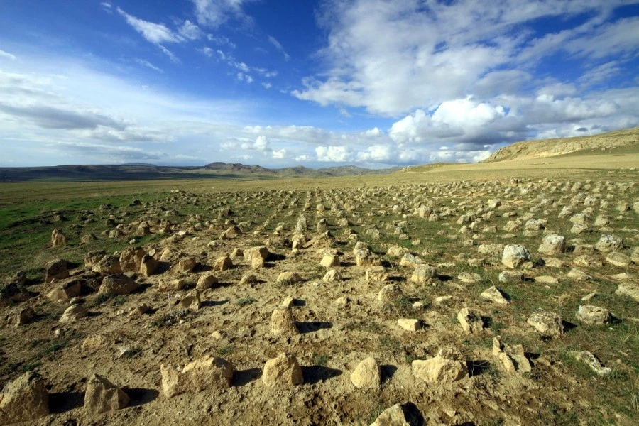 Van'ın Tuşba ilçesi Kalecik Mahallesi'nde, Urartu Dönemi'ne ait 1600 metrekarelik alana matematiksel düzenlemeyle yerleştirilmiş 2 bin 475 dikili taş, 25 Mezar odası ve taş halkaların yer aldığı alan, tahribata uğradı.