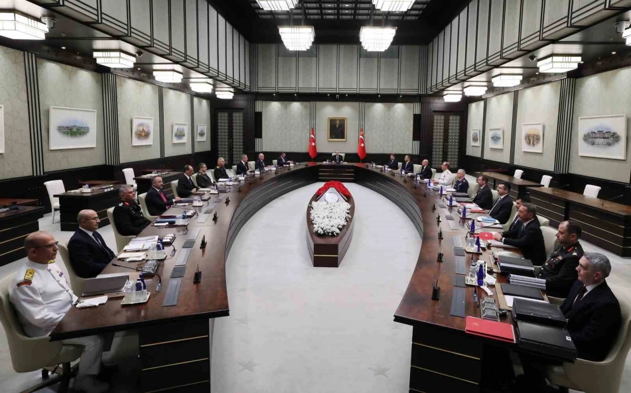 MGK, Cumhurbaşkanı Recep Tayyip Erdoğan’ın başkanlığında Cumhurbaşkanlığı Külliyesi’nde toplandı. Toplantı yaklaşık 2 buçuk saat sürdü. Toplantı Sonrası İletişim Başkanlığı tarafından paylaşılan MGk Bildirisi’nde," PKK/KCK-PYD/YPG, FETÖ ve DEAŞ terör örgütleri başta olmak üzere millî birlik ve beraberliğimiz ile bekamıza yönelik her türlü tehdit ve tehlikeye karşı yurt içinde ve yurt dışında azim, kararlılık ve başarıyla yürütülen operasyonlar ile son dönemde meydana gelen uluslararası gelişmeler hakkında Kurula bilgi sunulmuştur" denildi.