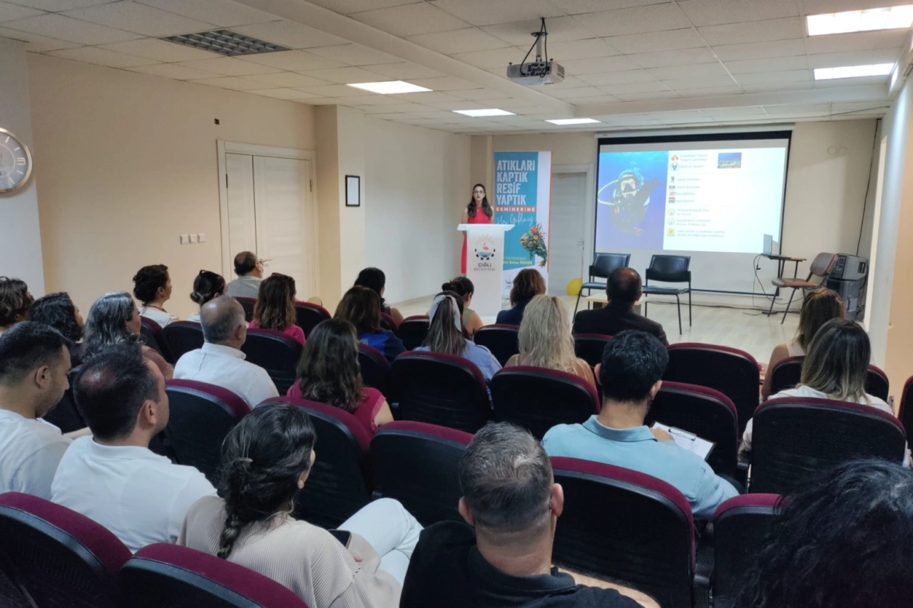 Çiğli Belediyesi’nin ev sahipliğinde düzenlenen “Atıkları Kaptık, Resif Yaptık” adlı seminerde, Endüstriyel tasarımcı ve proje yürütücüsü Nermin Sena Özger, atıkların dönüşüm sürecinden deniz ekosistemine etkilerine kadar birçok konuda katılımcılara bilgi verdi. Özger’in sunumuyla gerçekleşen etkinlikte, sürdürülebilir yaşamın önemi de vurgulandı.