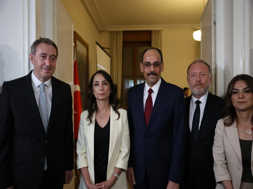 Bakırhan ve Hatimoğulları, Kalın'ı kapıda karşıladı. Görüşmede DEM Parti Grup Başkanvekilleri Gülistan Kılıç Koçyiğit ve Sezai Temelli de yer aldı. 1 saat 10 dakika süren görüşmenin ardından herhangi bir açıklama yapılmadı.