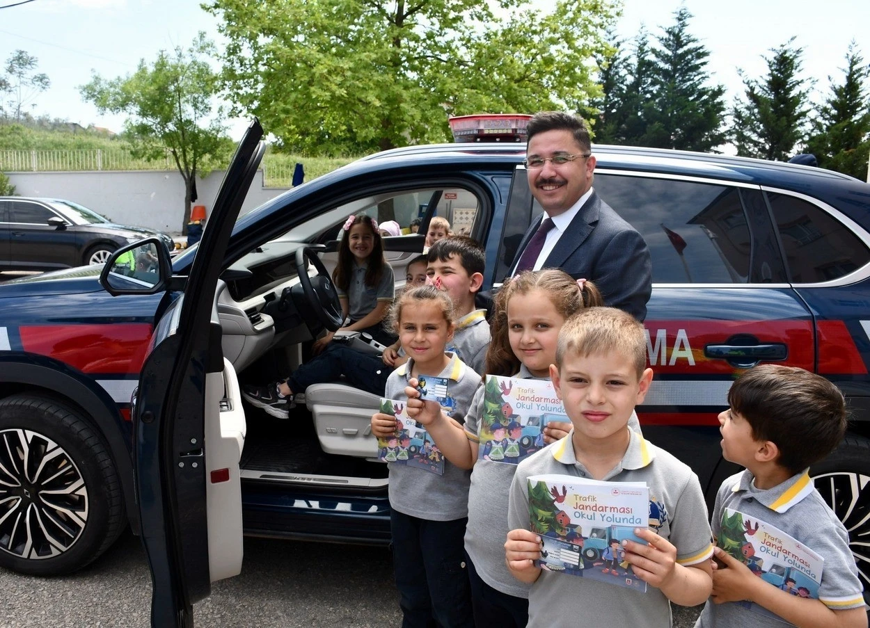Etkinlik kapsamında öğrencilere çeşitli bilgilendirici materyaller dağıtılırken, İlçe Jandarma Komutanlığı’nın envanterindeki yerli ve milli otomobil Togg da öğrencilerin ilgisini çekti. Minikler, Togg ile hatıra fotoğrafları çektirerek keyifli anlar yaşadı.