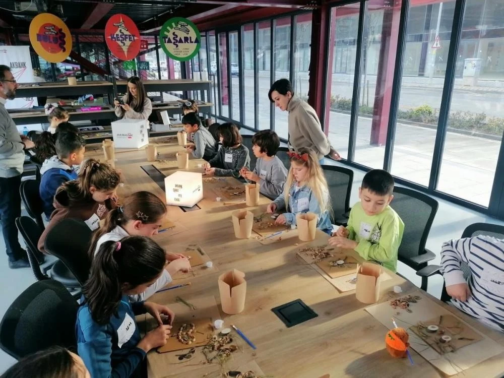 Günün ikinci etkinliği olan "Dönüşüm" atölyesinde ise odak noktası edebiyat ve doğa gözlemi oldu. Franz Kafka'nın Dönüşüm romanından esinlenilerek hazırlanan içerikte çocuklar, böceklerin ve küçük canlıların dünyasını mercek altına aldı. Makro fotoğraflar üzerinden canlıların renk, desen ve biçimlerini detaylıca inceleyen katılımcılar, bu gözlemlerden yola çıkarak kendi hayali böceklerini tasarladı.