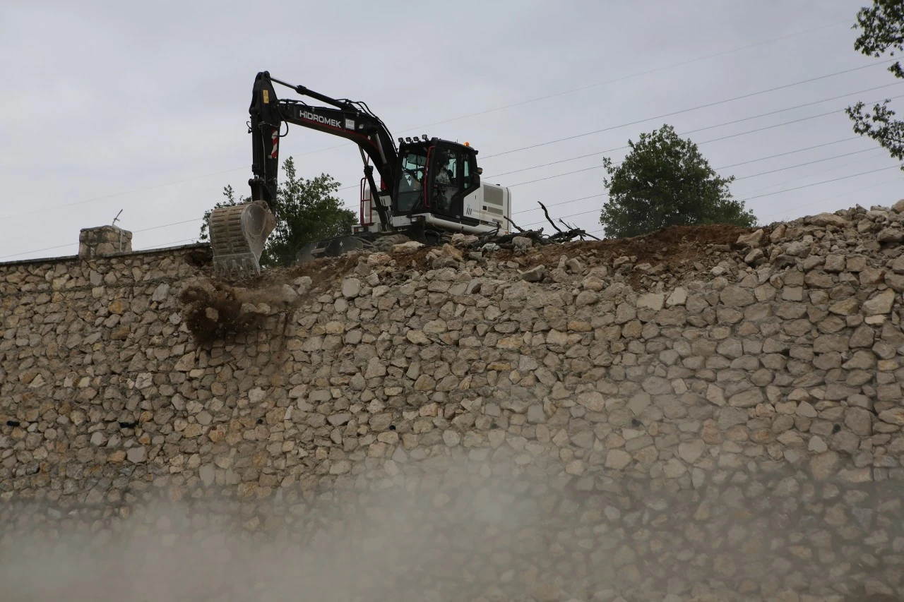 Yıkım ekipleri bu defa Dağyenice Mahallesi’nde, tarım alanlarında izinsiz inşa edilen 3 bin 800 metrekarelik bir duvara müdahale etti.