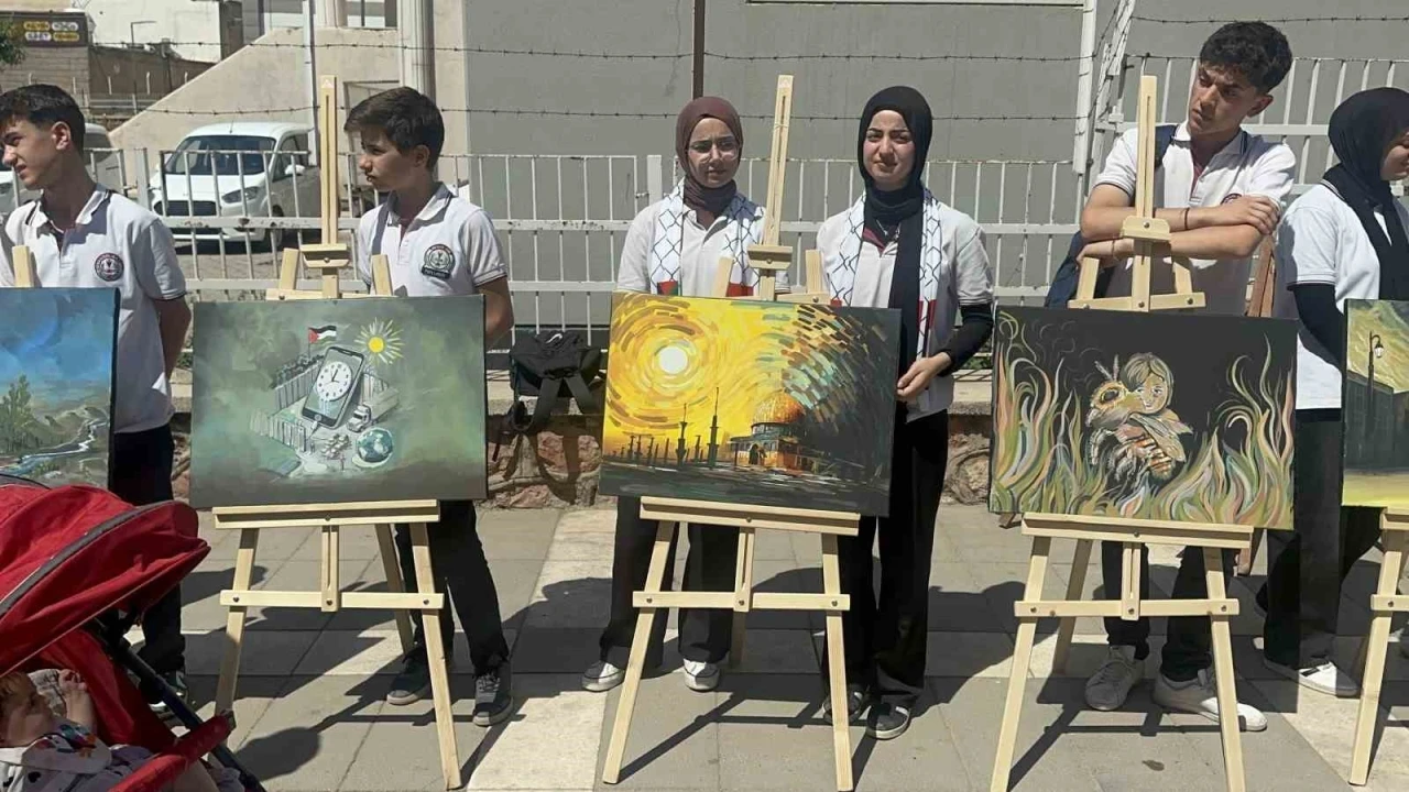 Şırnak’ta lise öğrencileri, Gazze’de yaşanan insanlık dramına dikkat çekmek için yaptıkları resimleri sergiledi.