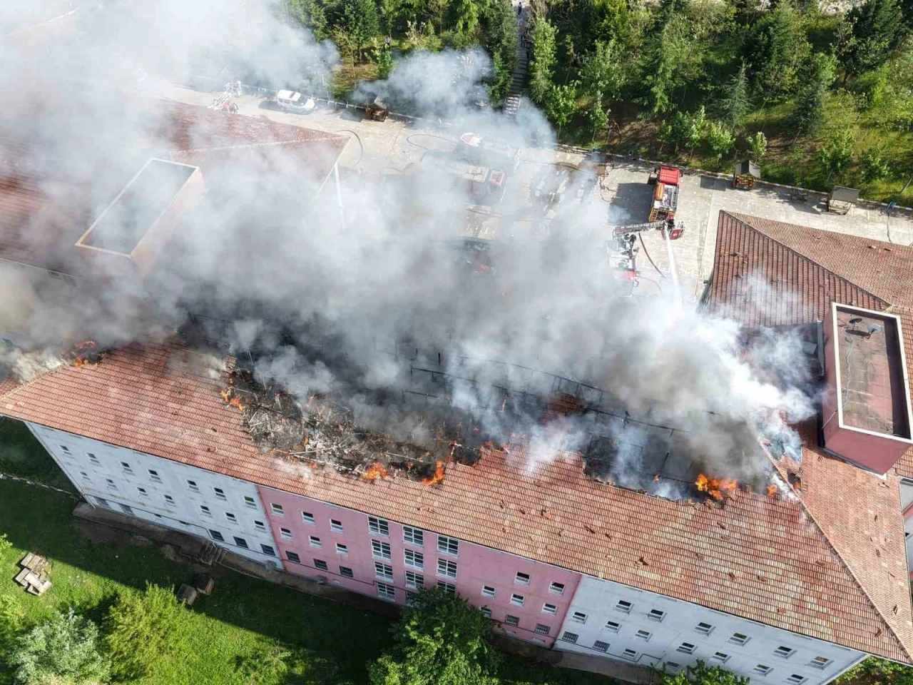 Kocaeli’nin İzmit ilçesinde bir lisenin çatısında çıkan yangın söndürüldü. Çatı kullanılamaz hale gelirken, okul havadan görüntülendi.