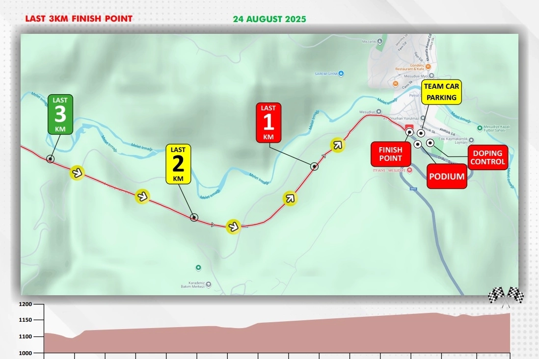 Durugöl Tabiaat Parkı Mevkiinden hareketle başlayacak yarışlar sahil yolunu takiple Büyükşehir Belediyesi Kavşağından dönerek İran Yolu Kavşağından Ulubey İstikametine devam edecek olup, Mesudiye Dereyolu Kavşağı (Çavuşoğlu Boğazı)’ndan Mesudiye İlçesi Topçam Kavşağına kadar devam edecek.