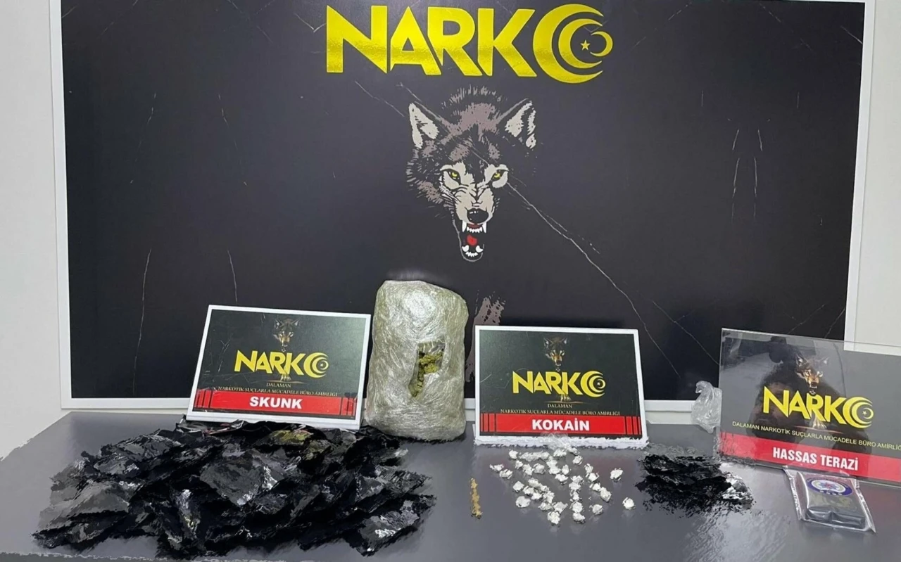 Muğla İl Emniyet Müdürlüğü Narkotik Suçlarla Mücadele Şubesi ekipleri, Ortaca ilçesinde piyasaya uyuşturucu madde sürüleceği ihbarı aldı. İhbar üzerine harekete geçen polis ekipleri, Cumhuriyet Başsavcılığı koordinesinde 21 Mayıs günü bir otele operasyon düzenledi. Polisin operasyonunda şüphelilerin kaldığı otel odasında 840 gram skunk, 29 gram kokain, çok sayıda kilitli poşet, 1 hassas terazi ele geçirildi. Olayla ilgisi olduğu tespit edilen 4 kişi gözaltına alındı.