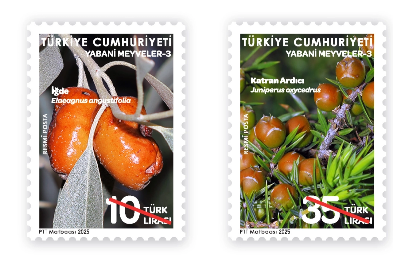 PTT AŞ, 11 Ağustos 2025 tarihinde “Yabani Meyveler-3” konulu (26x36 mm boyutunda) 5 TL, 10 TL, 35 TL, 100 TL ve 210 TL bedelli resmi posta pullarını PTT iş yerlerinde, PTT AŞ’ye ait www.filateli.gov.tr web adresinde satışa sundu.