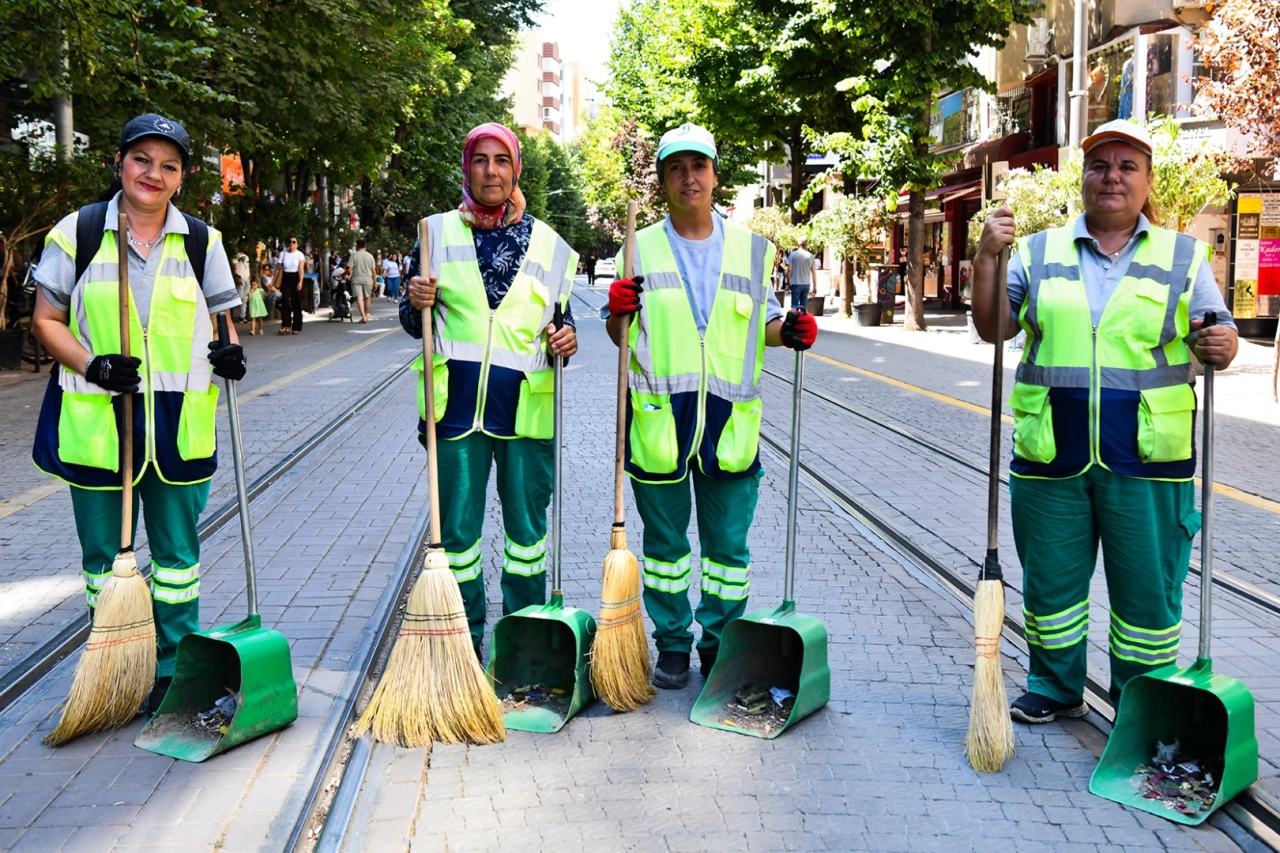 Tepebaşı Belediyesi Temizlik İşleri Müdürlüğü bünyesinde sahada görev yapan 28 kadın personel, ilçenin sokaklarını tertemiz hale getiriyor.