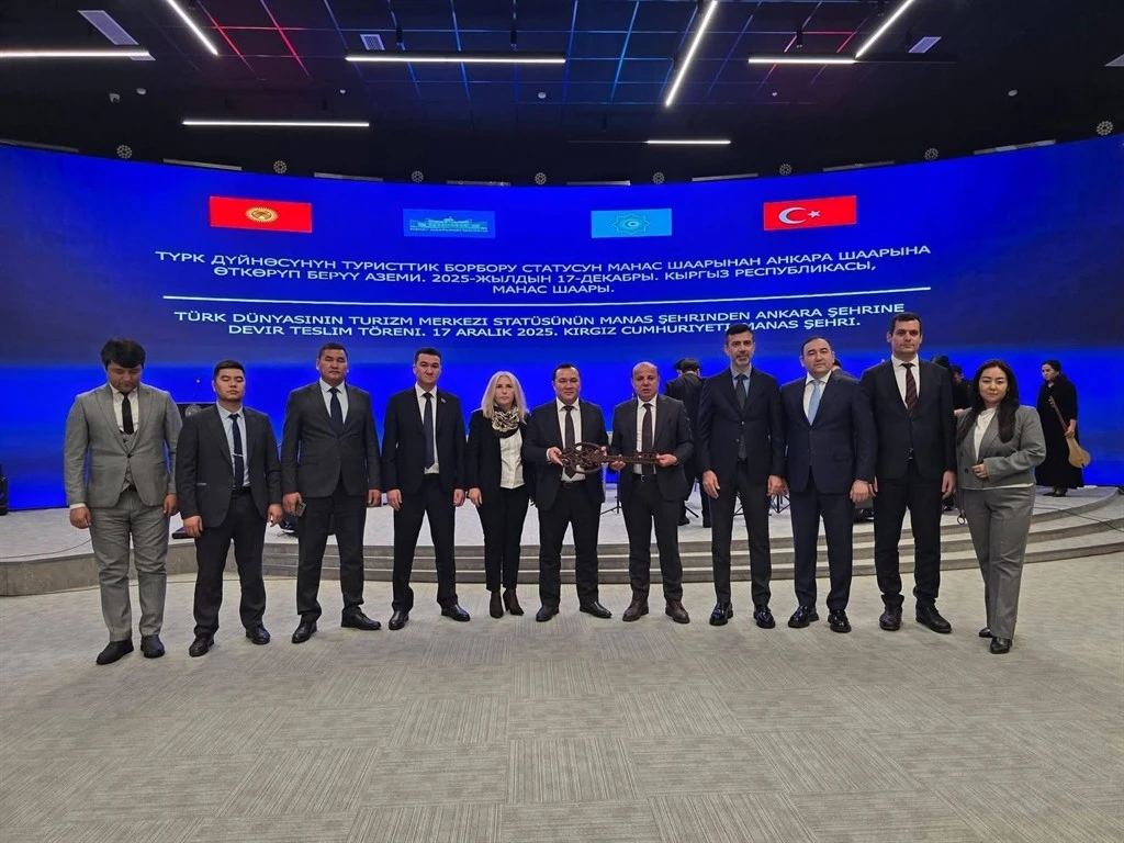Kültür ve Turizm Bakanlığı, 'Türk Dünyası Turizm Başkenti' ünvanının sembolü olan anahtarın, 2025 Turizm Başkenti Manas'tan, 2026 Türk Dünyası Turizm Başkenti Ankara'ya devredildiğini açıkladı.