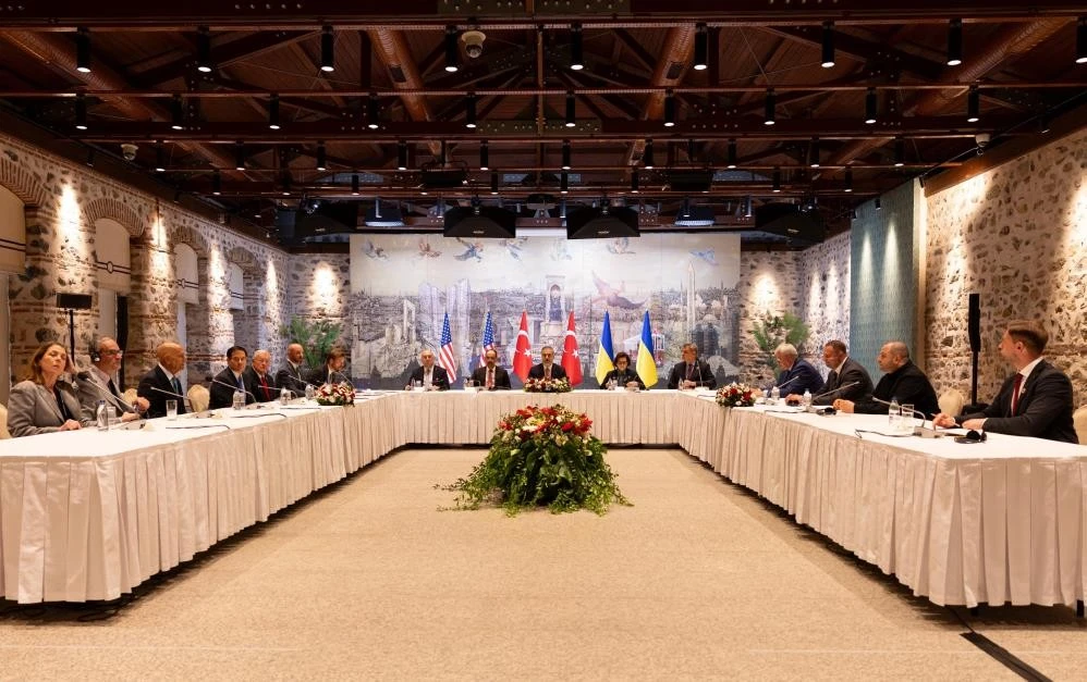 Ukrayna-Rusya arasındaki savaşın bitmesine yönelik İstanbul'da barış masası kuruldu. Türkiye-ABD-Ukrayna heyetleri arasındaki toplantı Dışişleri Bakanı Hakan Fidan'ın başkanlığında Cumhurbaşkanlığı Dolmabahçe Çalışma Ofisi'nde başladı.