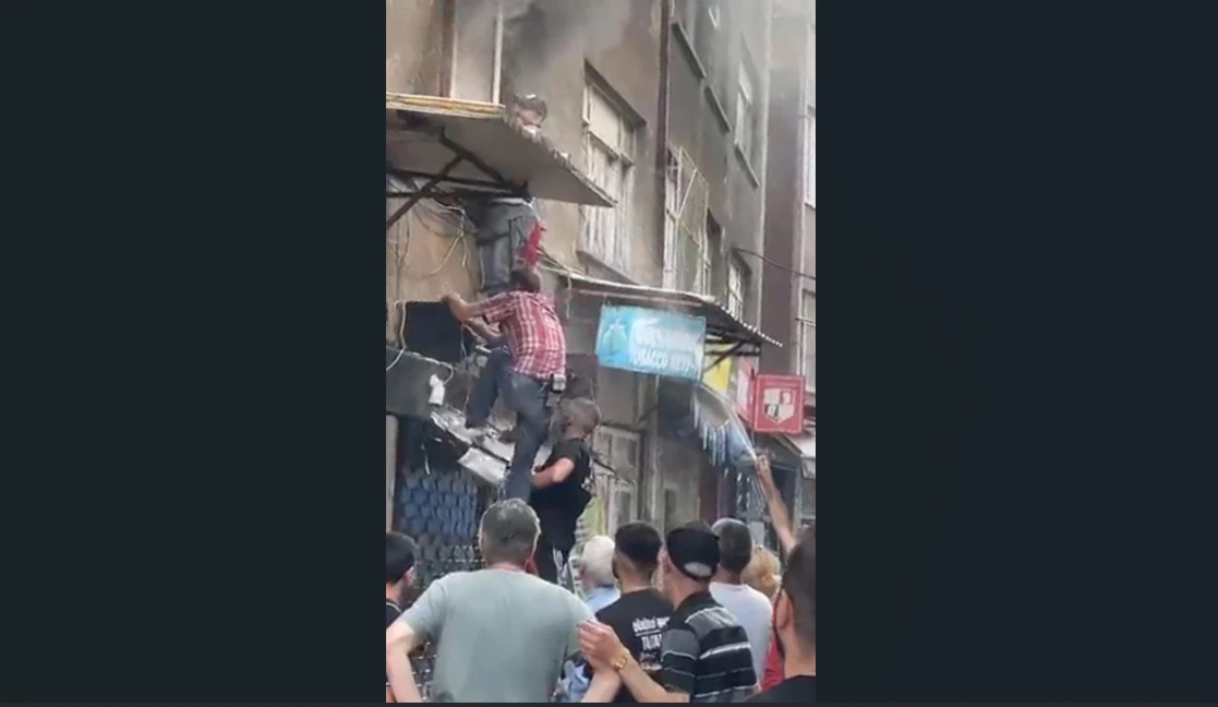 Bursa'da bir evde çıkan yangında içeride mahsur kalan kadın, vatandaşlar tarafından kurtarıldı.