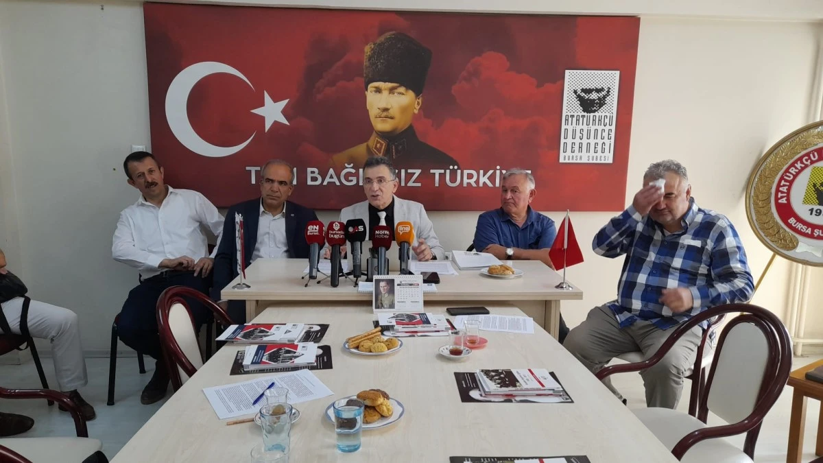 Atatürkçü Düşünce Derneği Bursa Şubesi hizmet binasında düzenlenen basın toplantısında Şube Başkanı Gürhan Akdoğan, Şube yönetim kurulu üyeleri Raşit Gürbüz, Ali Küçüksarı, Prof. Dr. Tahir Baştaymaz, Oğuz Altınok ve üyeler de hazır bulundu…
