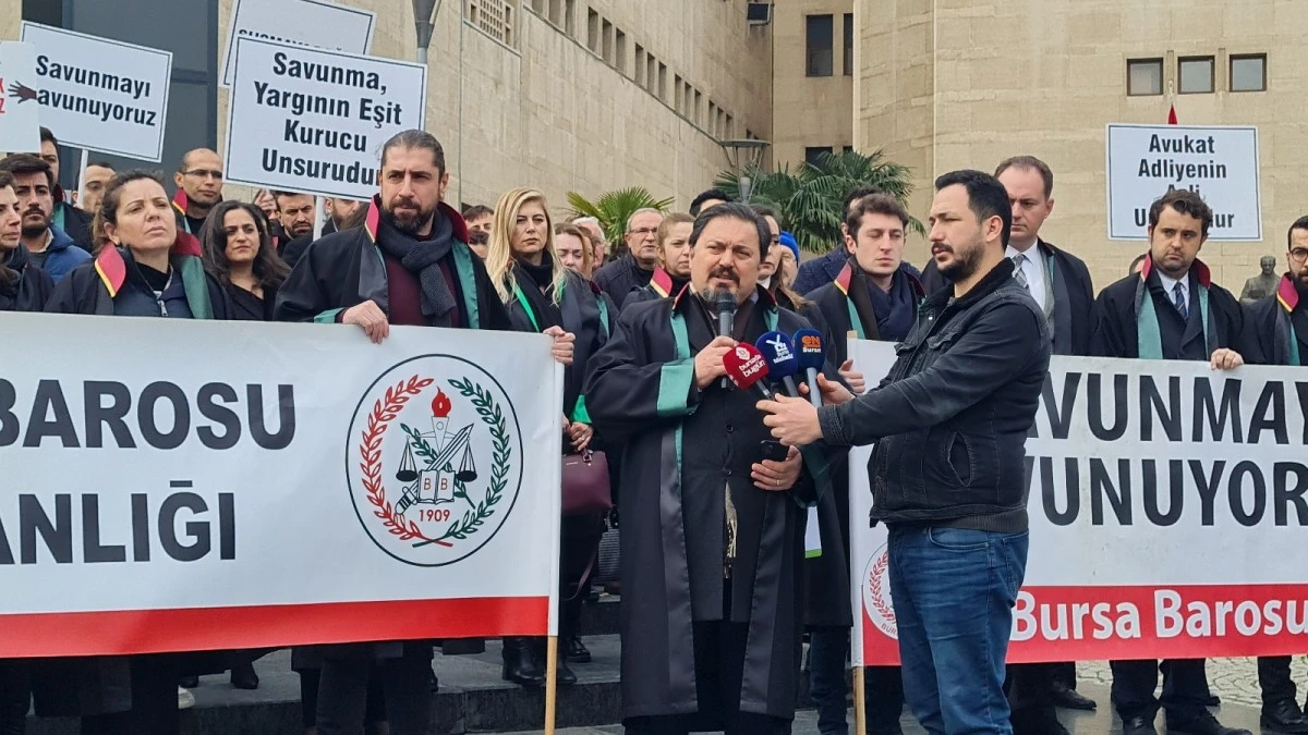 Bursa Adalet Sarayı önünde yapılan ve çok sayıda avukatın yanı sıra Türkiye Barolar Birliği (TTB) Başkan Yardımcısı Gürkan Altun ile Bursa Barosu Yönetim Kurulu Üyeleri Yener Poroy, Özge Yılmaz Türker, Müberra Gülen Aydın, İsmail İşel, Nail Abay, Gülender Adıgüzel Özcan da katıldığı etkinlikte basın açıklaması ise Bursa Barosu Başkan Yardımcısı Aslı Evke Yetkin tarafından okundu.