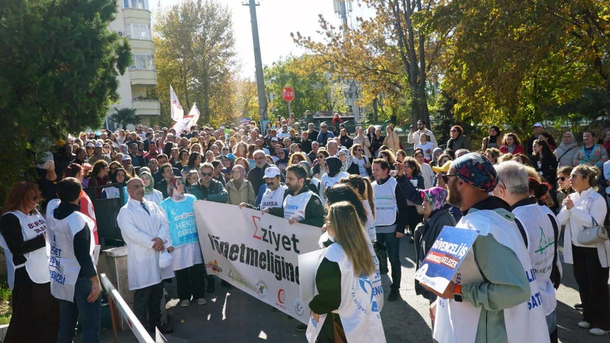 Bursa Tabip Odası (BTO), Genel Sağlık İş Sendikası, HEKİM SEN, Hekimler Birliği Sendikası, Sağlık ve Sosyal Hizmetler Emekçileri Sendikası Bursa Şubesi (SES), Bursa Aile Hekimleri Derneği (BURSAHED) ile Birlik ve Dayanışma Sendikası’nın çağrısıyla Bursa İl Sağlık Müdürlüğü önünde bir araya gelen sağlık çalışanları basın açıklaması gerçekleştirdi.