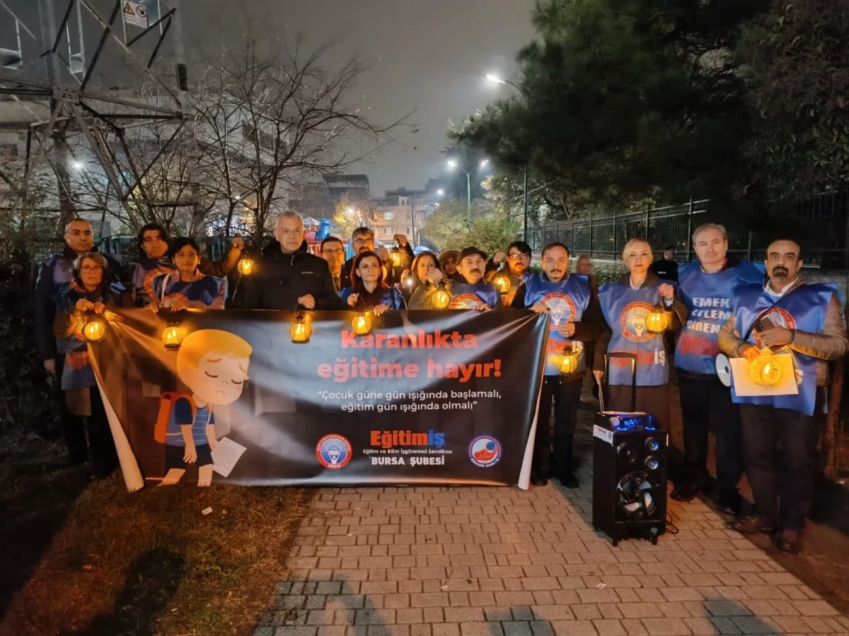 Sendika yönetimi ve öğretmenlerin yanısıra CHP Bursa Milletvekili Prof. Dr. Kayıhan Pala'nın da katıldığı etkinlikte Eğitim-İş Bursa Şubesi başkanı Yeliz Toy sözlerine “Eğitim gün ışığında olmalı, günün aydınlanması ile başlamalı kararması ile bitmeli” diyerek başladı…