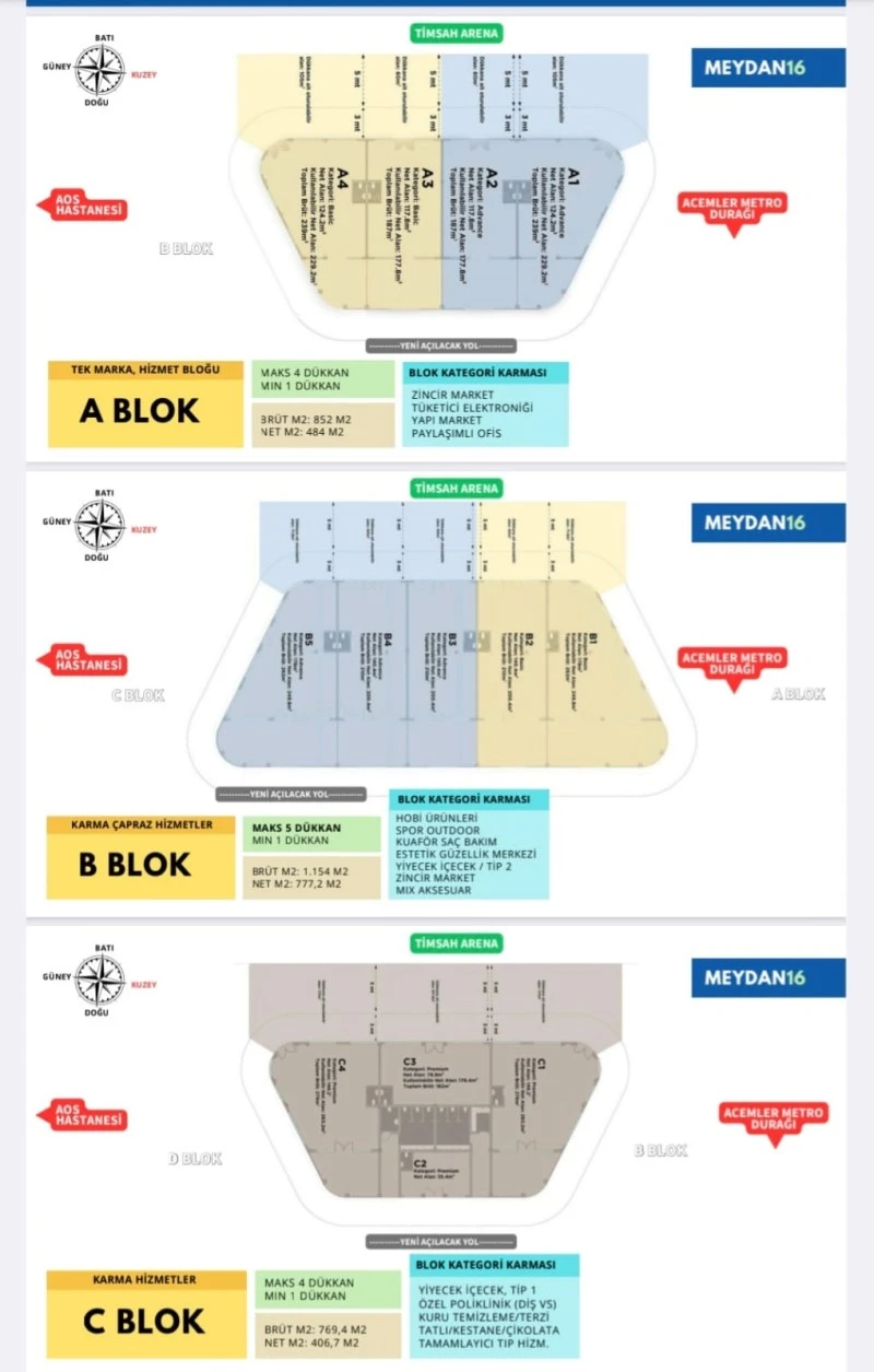 A-B-C-D blokları ise Fırın, Fasfood, Restoran, Market- Kafe gibi yiyecek, içecek işletmelerine tahsis edildi.