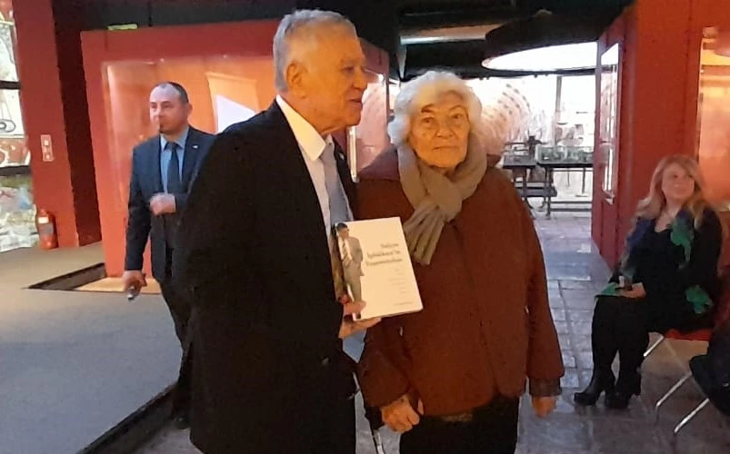 Yalçın İpbüken kitabıyla ilgili konuşma yaparken bile eşini yanından ayırmadı… Konuşmasında sık sık eşinin fedakarlığına ve kendisine verdiği desteğe atıfta bulundu ve sevgisini dile getirdi.